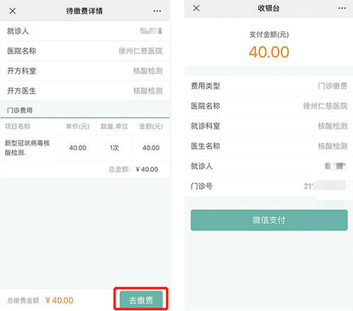 徐州仁慈醫(yī)院核酸檢測線上繳費(fèi)指引